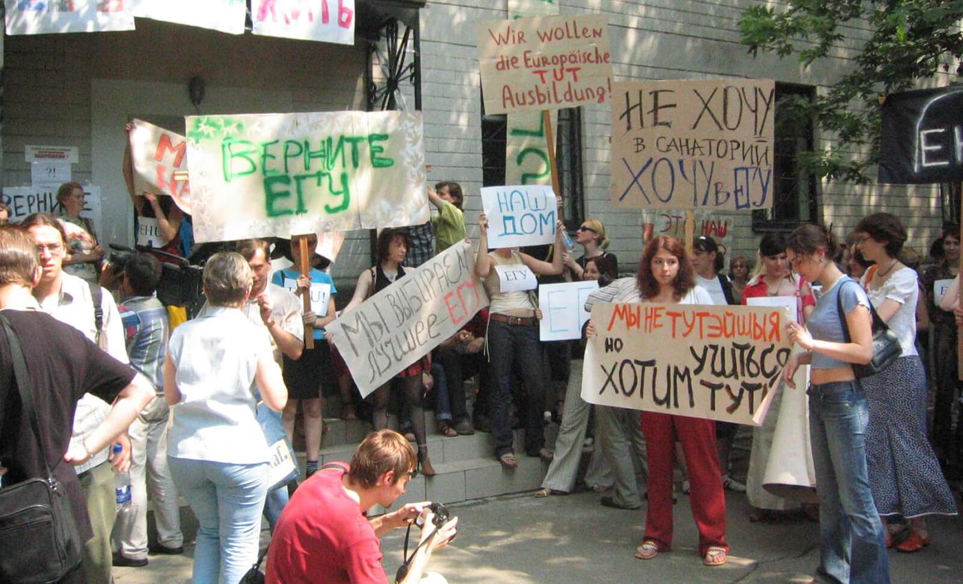 Пикет у здания ЕГУ в Минске 28 июля 2004 года. Фото: ehuniversity.lt